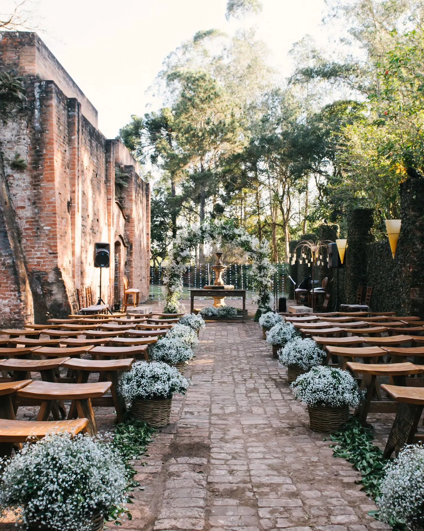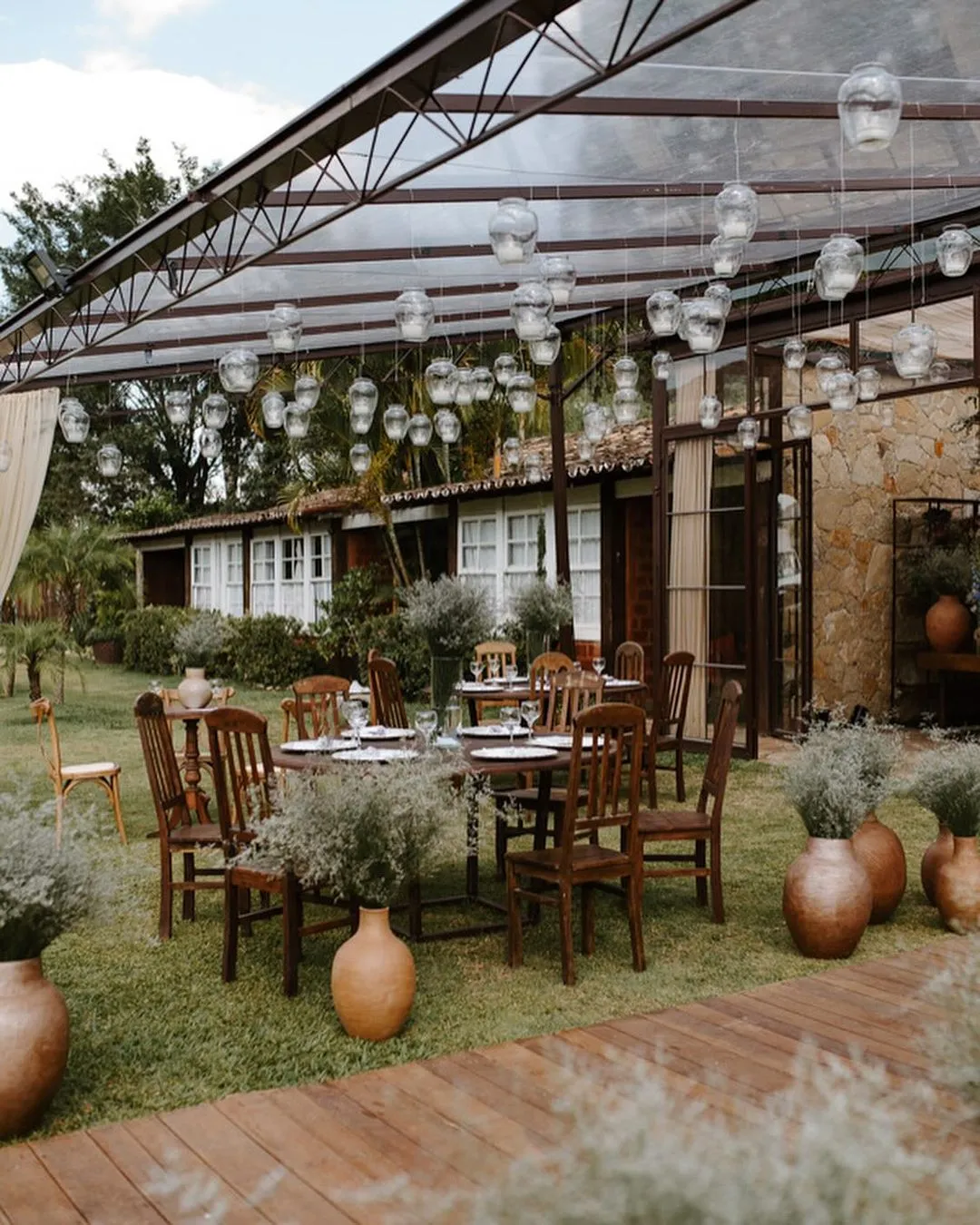 Espaço Raízes , em Tiradentes , MG, é o cenário perfeito para quem busca um casamento único e privativo. Com 10.000 m², o local combina o charme rústico de tijolos aparentes e chaminés com a elegância de jardins e uma capela histórica, ideal para cerimônias ao ar livre ou em ambientes internos.